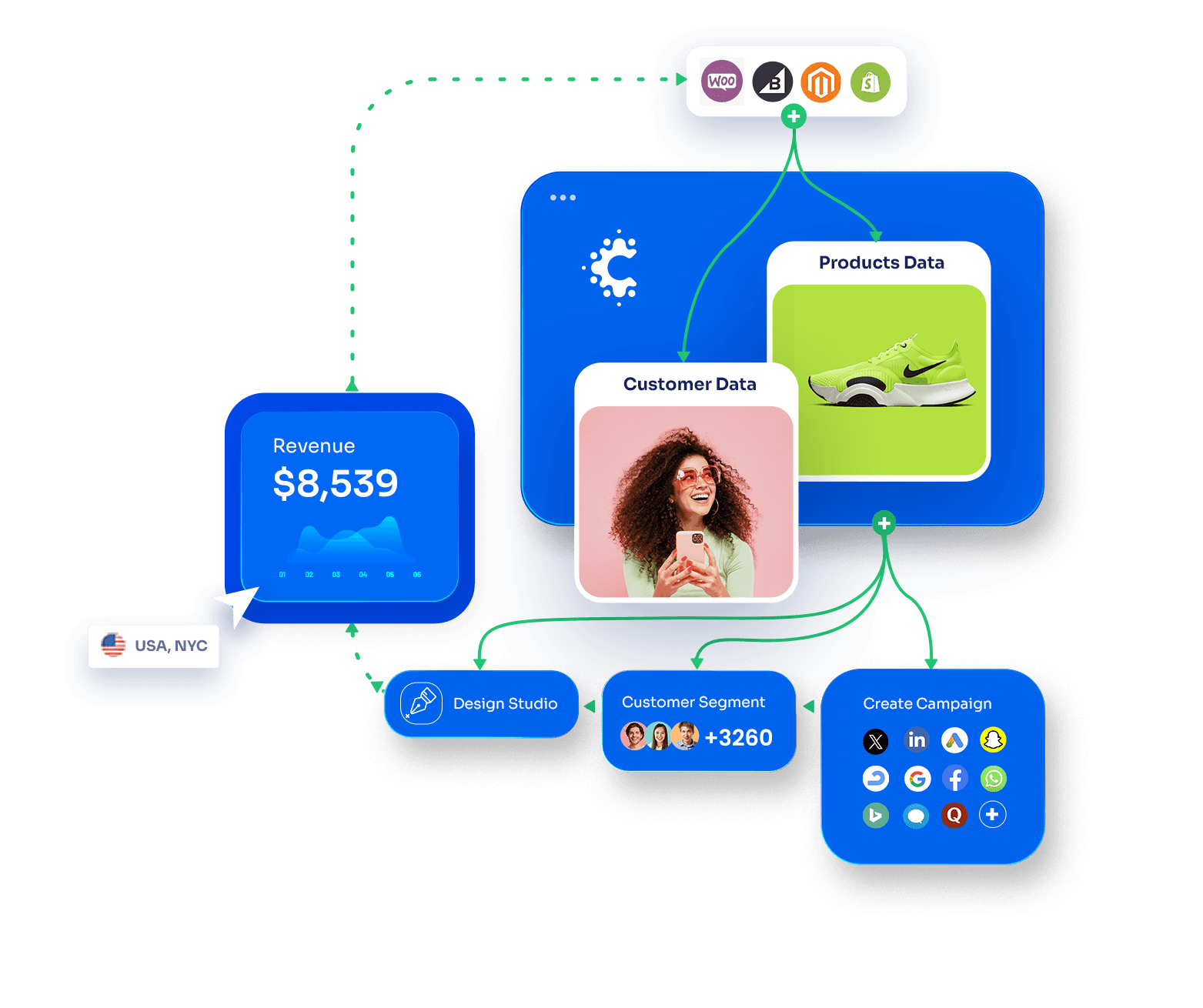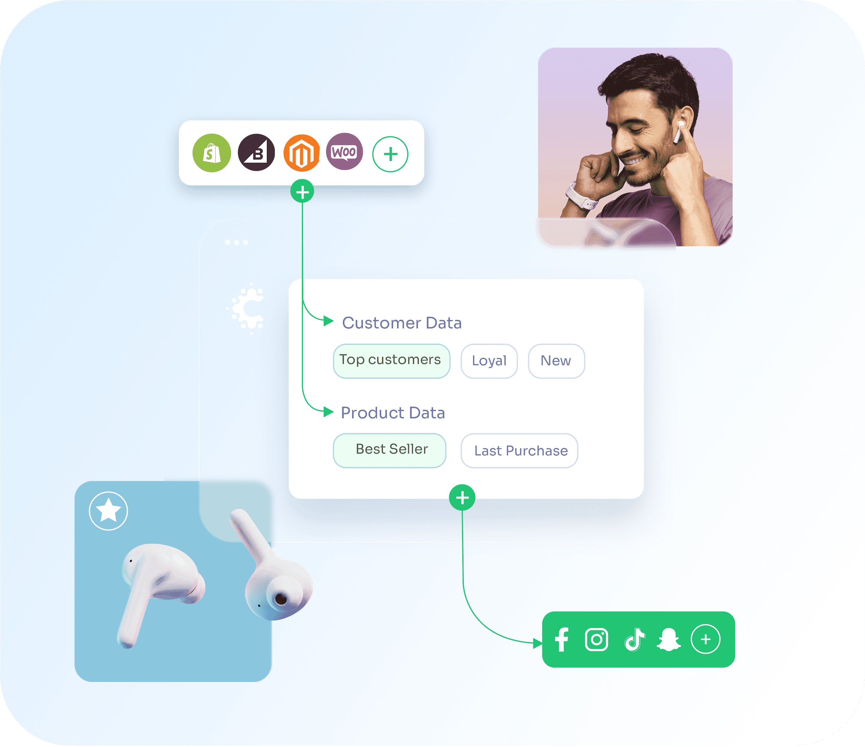 Seamlessly integrate with your ecommerce catalog to drive your product-based advertising campaigns, enhancing your engagement, conversion, and ROAS metrics.